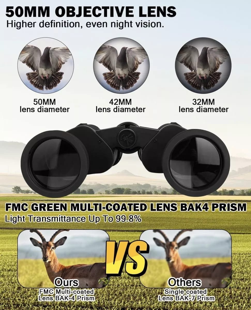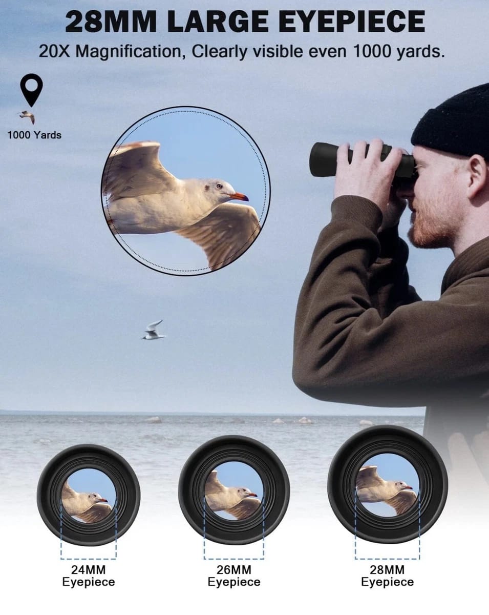 Professionelles Fernglas: Dieses Fernglas mit 20-facher Vergrößerung, 50-mm-Objektiv und großem Sichtfeld bietet erstklassige Klarheit und Helligkeit. Ausgestattet mit einem 22-mm-Okular mit grüner Folie und einem weiten Sichtfeld von 56 m/1000 m eignet es sich perfekt für Vogelbeobachtung, Wandern, Jagen, Reisen, Oper, Konzerte, Sportveranstaltungen und Safaris.