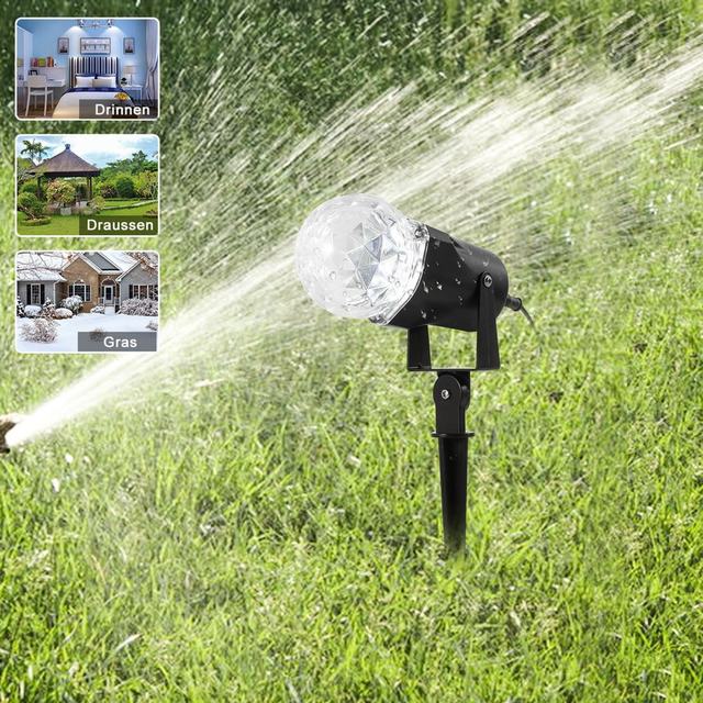 Projiziert tolle Lichteffekte, kann mit Erdspieß oder Standfuß verwendet werden