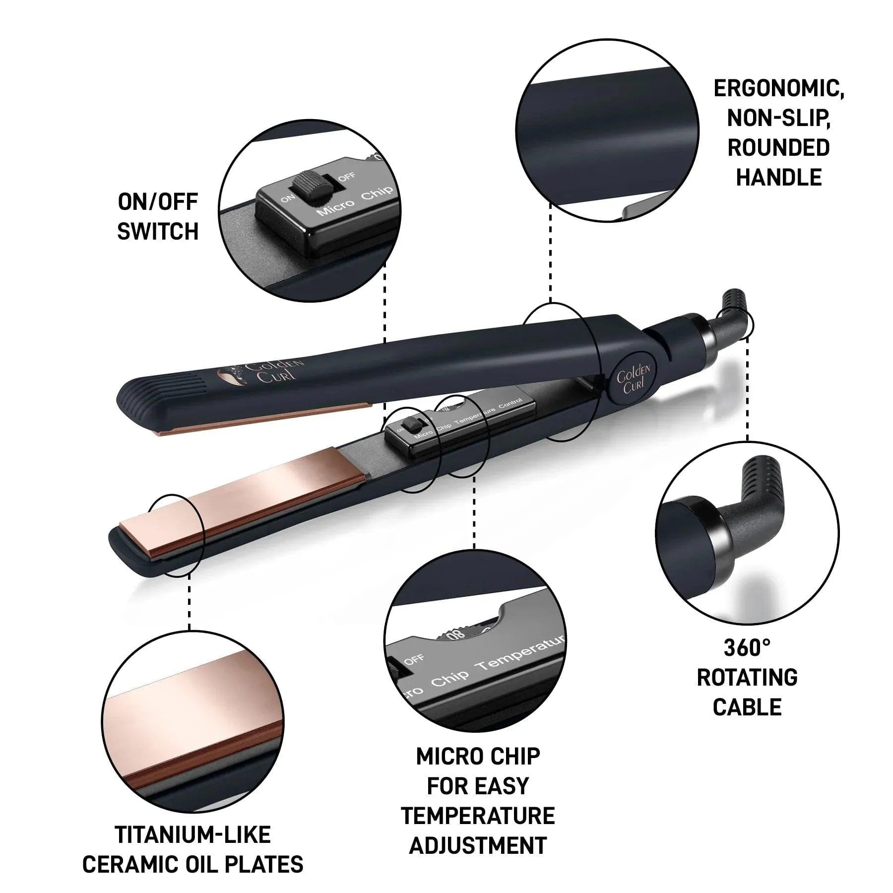 Es handelt sich um ein Glätteisen mit schwebenden Keramikheizplatten, einem LCD-Display für präzise Temperaturregelung und einer schnellen Aufheizzeit von nur einer Minute.
