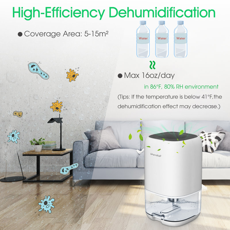 Leistungsstarke Entfeuchtung mit 450 ml/Tag: Dank fortschrittlicher Halbleitertechnologie absorbiert der Luftentfeuchter bis zu 450 ml Feuchtigkeit pro Tag und reduziert die Luftfeuchtigkeit schnell. Entwickelt für kleine Räume (5–15 m²), ideal für Badezimmer, Abstellräume, Schränke, Vorhänge, Wohnmobile und vieles mehr.