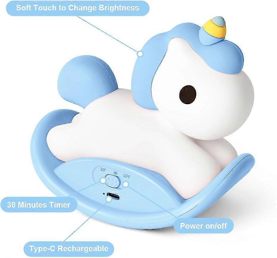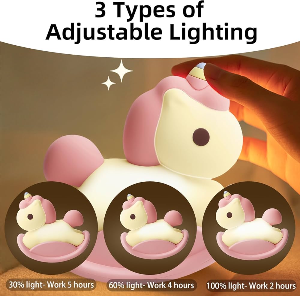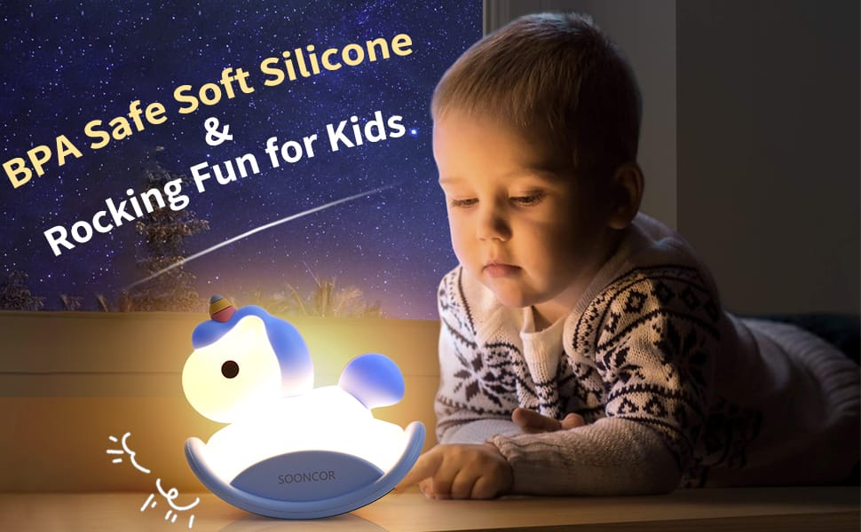 Sicheres Silikonmaterial: Unser Einhorn-Nachtlicht besteht aus weichem, BPA-freiem Silikon, ist frei von Kleinteilen, langlebig und leicht zu reinigen. Es kann nach Belieben gedrückt und geklopft werden, sodass Kinder unbesorgt damit spielen können. Das Nachtlicht bietet Eltern Sicherheit und Kindern endlosen Spielspaß.