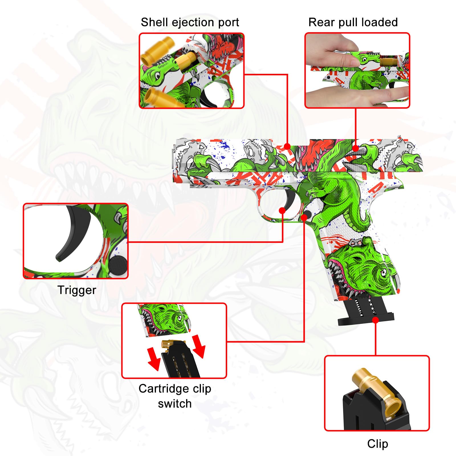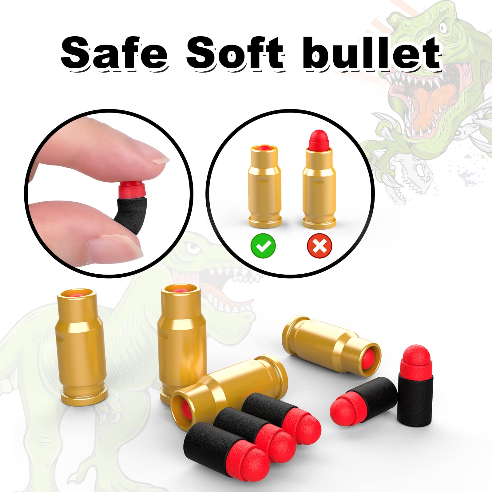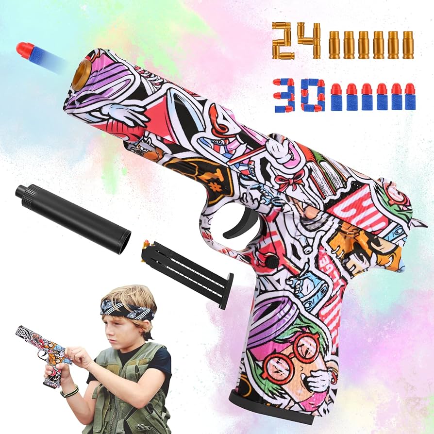 Shooting experience: the toy gun uses a spring-loaded magazine for reloading balls. Sliding action with great sound and magazine release button, while it is much lighter and smoother for children for their not-so-strong hands. Removable magazine, manual reload, automatic ejection of bullet cases, safe soft bullets, the perfect accessory set for endless game combat.