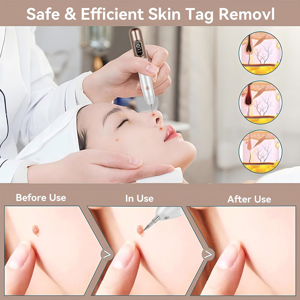 Fortschrittliches Muttermalentfernungsset: Verbesserte Generation des Hautfleckenentfernungsstifts mit fortschrittlicher deutscher Kohlenstoffionisationstechnologie mit niedriger Temperatur und hoher Frequenz. Kein Gefühl von Stromschlägen.