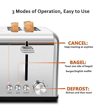 Viele Toaster, darunter möglicherweise auch dieses Modell, verfügen über eine Auftaufunktion, die die Toastzeit verlängert, um gefrorene Speisen wie Brot oder Waffeln richtig aufzutauen und anschließend zu toasten.