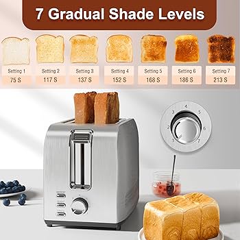 Der Toaster bietet 7 Bräunungsstufen für individuelle Bräunungsgrade.
